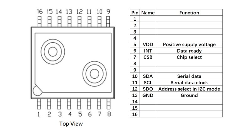 In the hardware circuit, the WF200DP requires pin 13 to be connected to GND to ensure zero-degree drift accuracy.The SDA pin of the WF200DP is for serial data and the SDO pin is for I2C output.